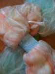 And this year we also snagged a few lovely pre-drafted artyarn braids.  Abella Prieto is located in Nashville, TN (YAY!) and her booth is always full of surprises … banana fiber, Sari silks, beaded yarns, cashmeres, silks, bamboo  … and she has an Etsy shop … jahtsemer.esty.com